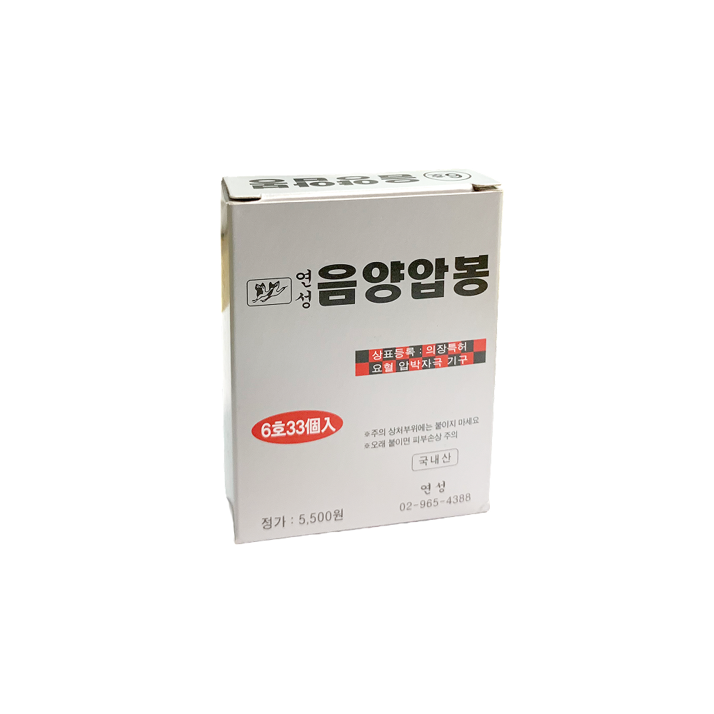 은색 금속 압봉으로 일정한 압력을 유지하며, 스티커 타입으로 피부에 간편하게 부착할 수 있습니다. 6호 규격은 비교적 작은 사이즈로 귀, 손, 국소 부위 등 세밀한 자극이 필요한 부위에 적합합니다. ‘음양압봉’ 구성으로 금·은 혼합 세트 형태로 제공되는 경우도 있습니다.