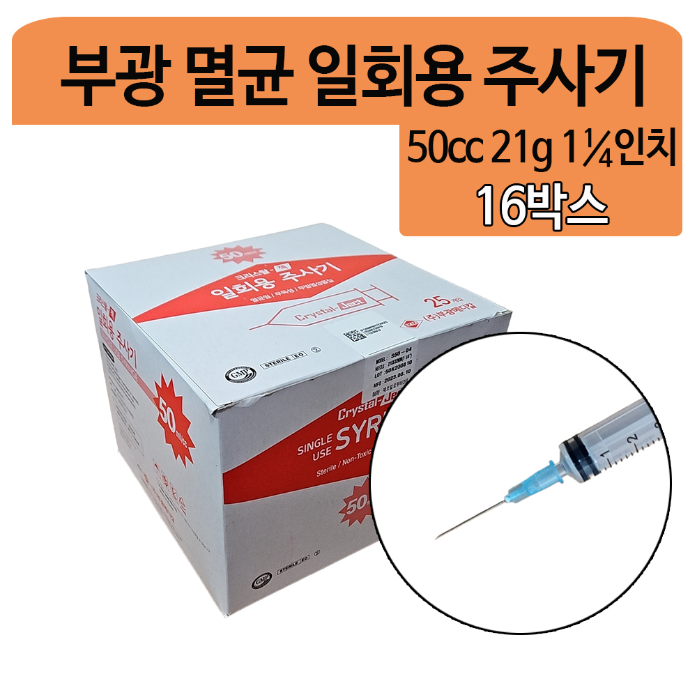부광 50cc 21G 1¼인치 일회용주사기 16박스
