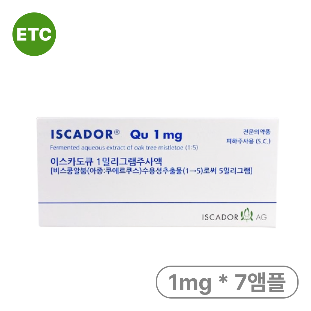 이스카도큐 1mg는 겨우살이(Viscum album) 추출물을 주성분으로 하는 전문의약품 주사제로,