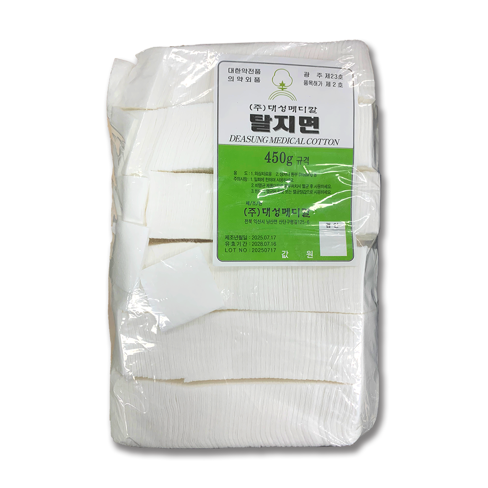대성 컷트솜 탈지면 4cm × 4cm 450g은 일정한 규격으로 재단된 탈지면 형태의 의료용 솜 제품입니다. 병원, 의원, 한의원 등 의료기관에서 상처 처치, 소독 보조, 피부 관리 등의 용도로 사용되는 의료용 소모품으로 다양한 처치 환경에서 활용됩니다.