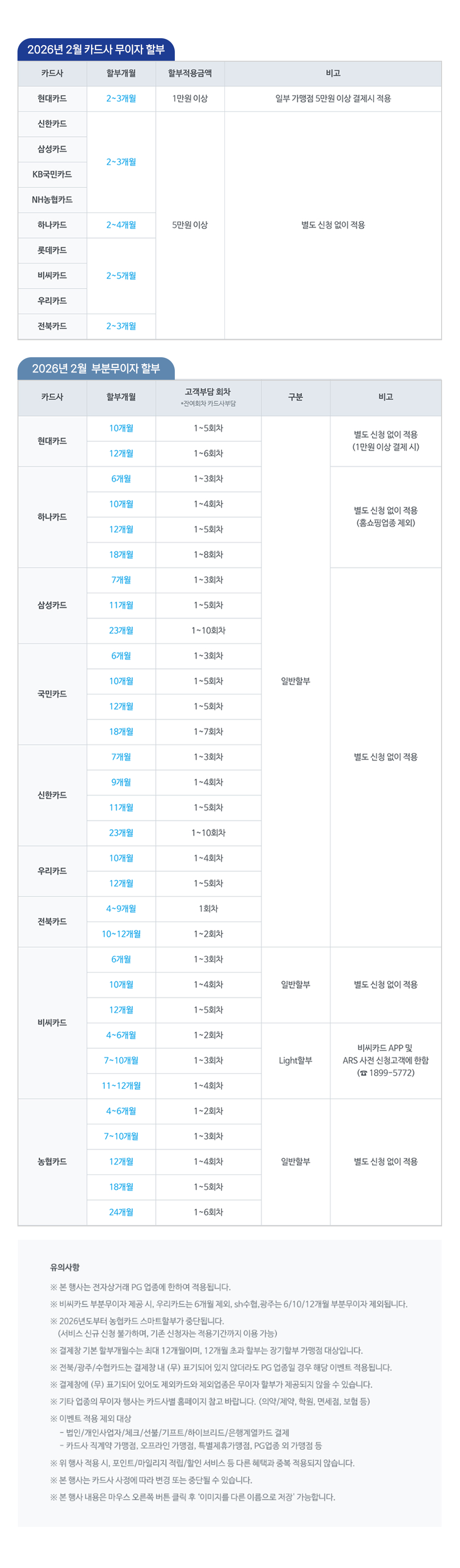 26년 2월 무이자 할부 안내
