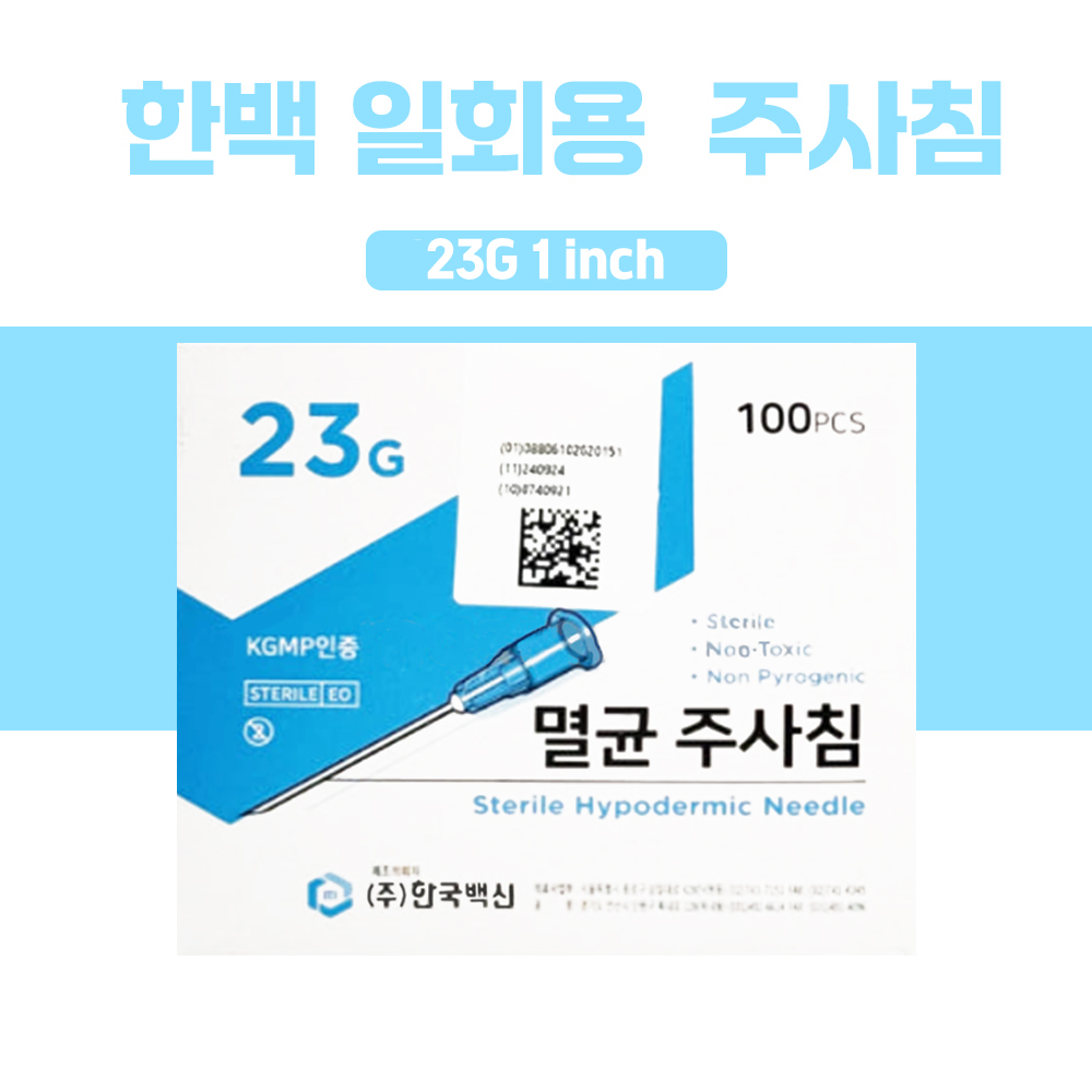 한백 일회용주사침 23G 1 inch 1박스(100개입)