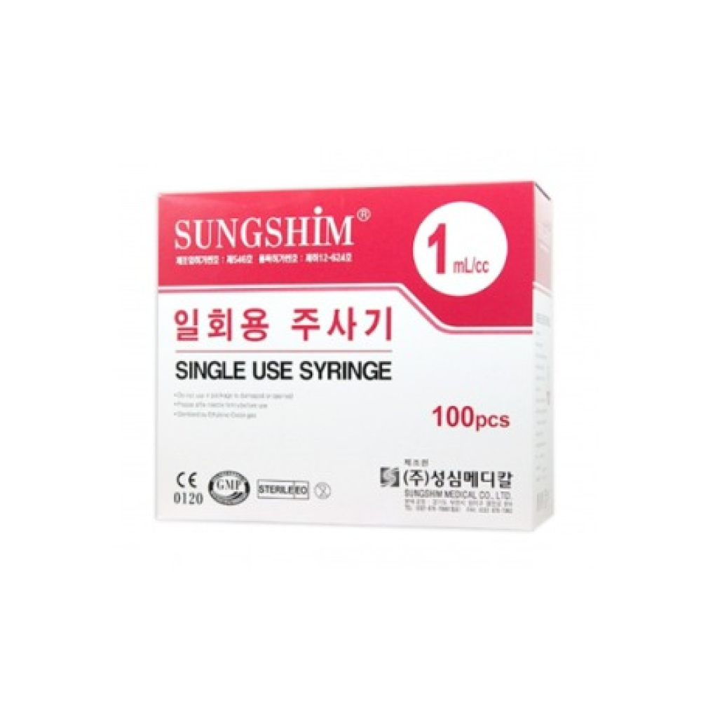성심 1cc 26G 1/2인치 일회용 주사기 1박스[100개]